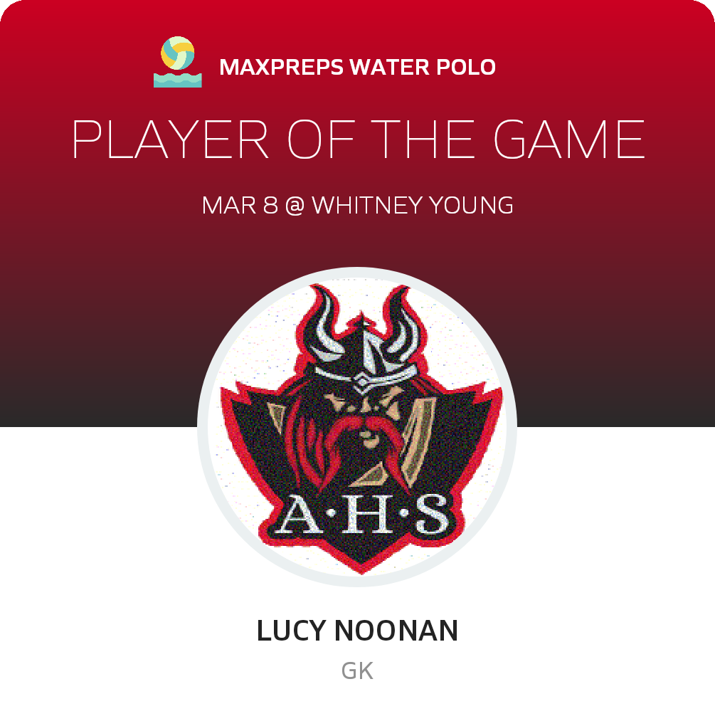 Congratulations to #1 Lucy Noonan for being selected the Amundsen Girls Water Polo Player of the Game.