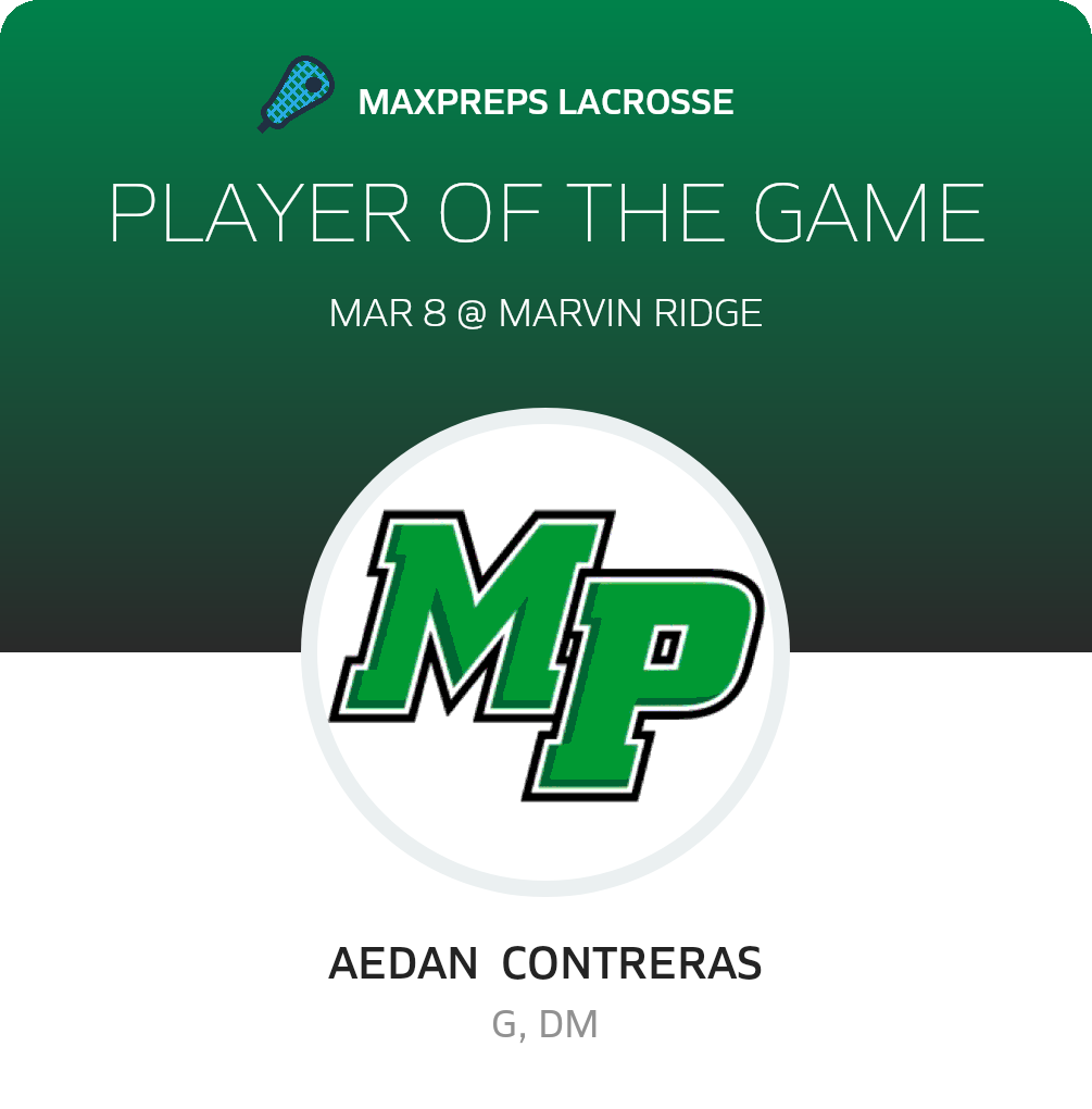 Congratulations to #33 Aedan Contreras for being selected the Myers Park Lacrosse Player of the Game.