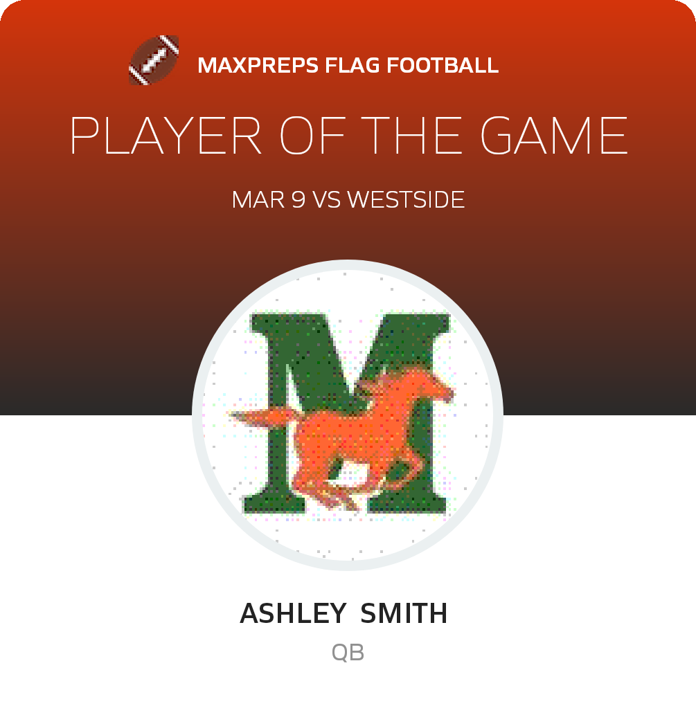 Congratulations to #1 Ashley Smith for being selected the Mandarin Girls Flag Football Player of the Game.