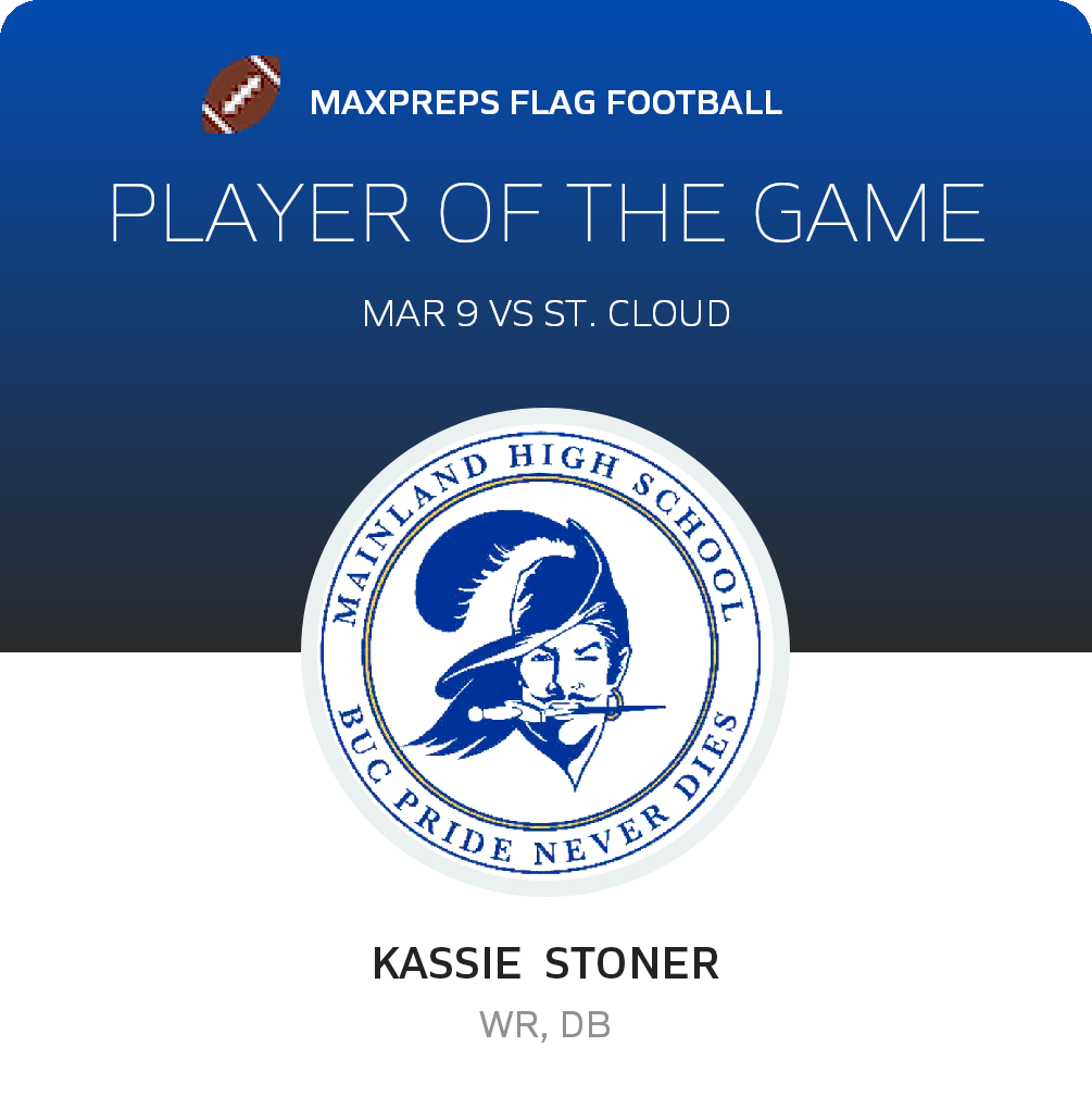 Congratulations to #14 Kassie Stoner for being selected the Mainland Girls Flag Football Player of the Game.