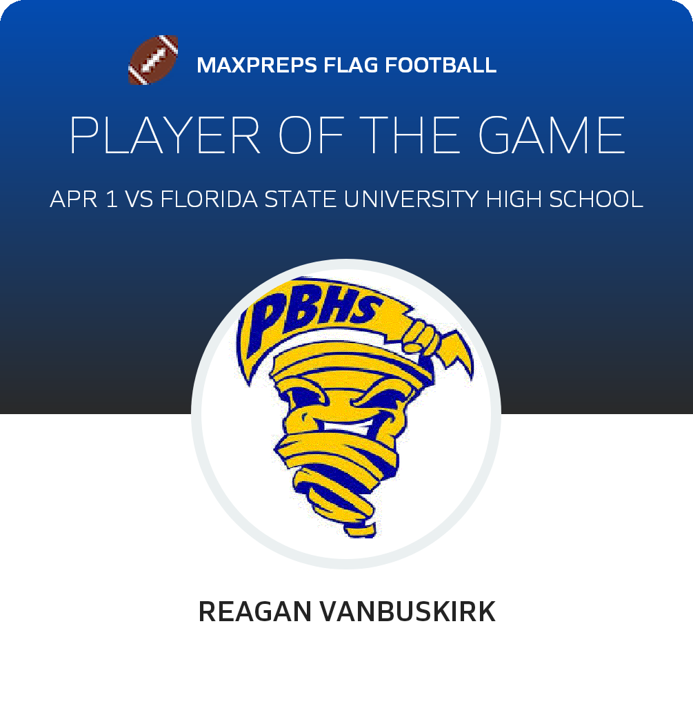 Congratulations to #7 Reagan VanBuskirk for being selected the Pompano Beach Girls Flag Football Player of the Game.