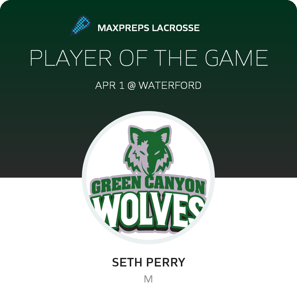 April 1, 2022: Sandy, UT 84093 In Friday's non-league contest, the Green Canyon Wolves (North Logan, UT) lacrosse squad routed the host Waterford Ravens (Sandy, UT), by a count of 12-0.