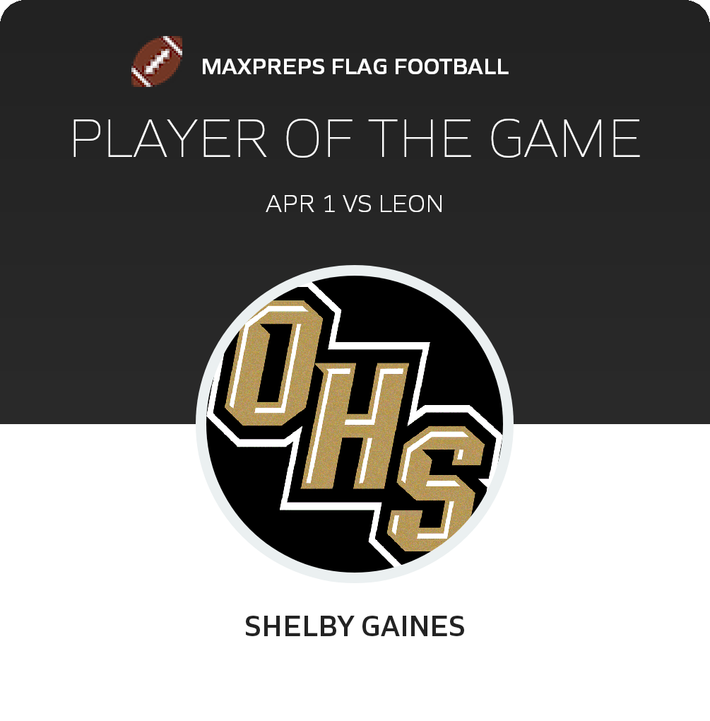 Congratulations to #24 Shelby Gaines for being selected the Oakleaf Girls Flag Football Player of the Game.