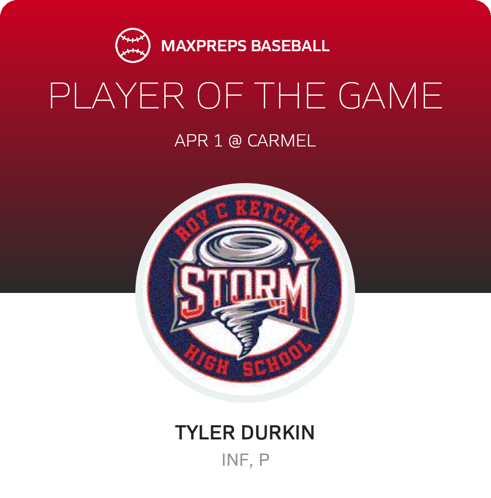 Congratulations to #21 Tyler Durkin for being selected the Ketcham Baseball Player of the Game.