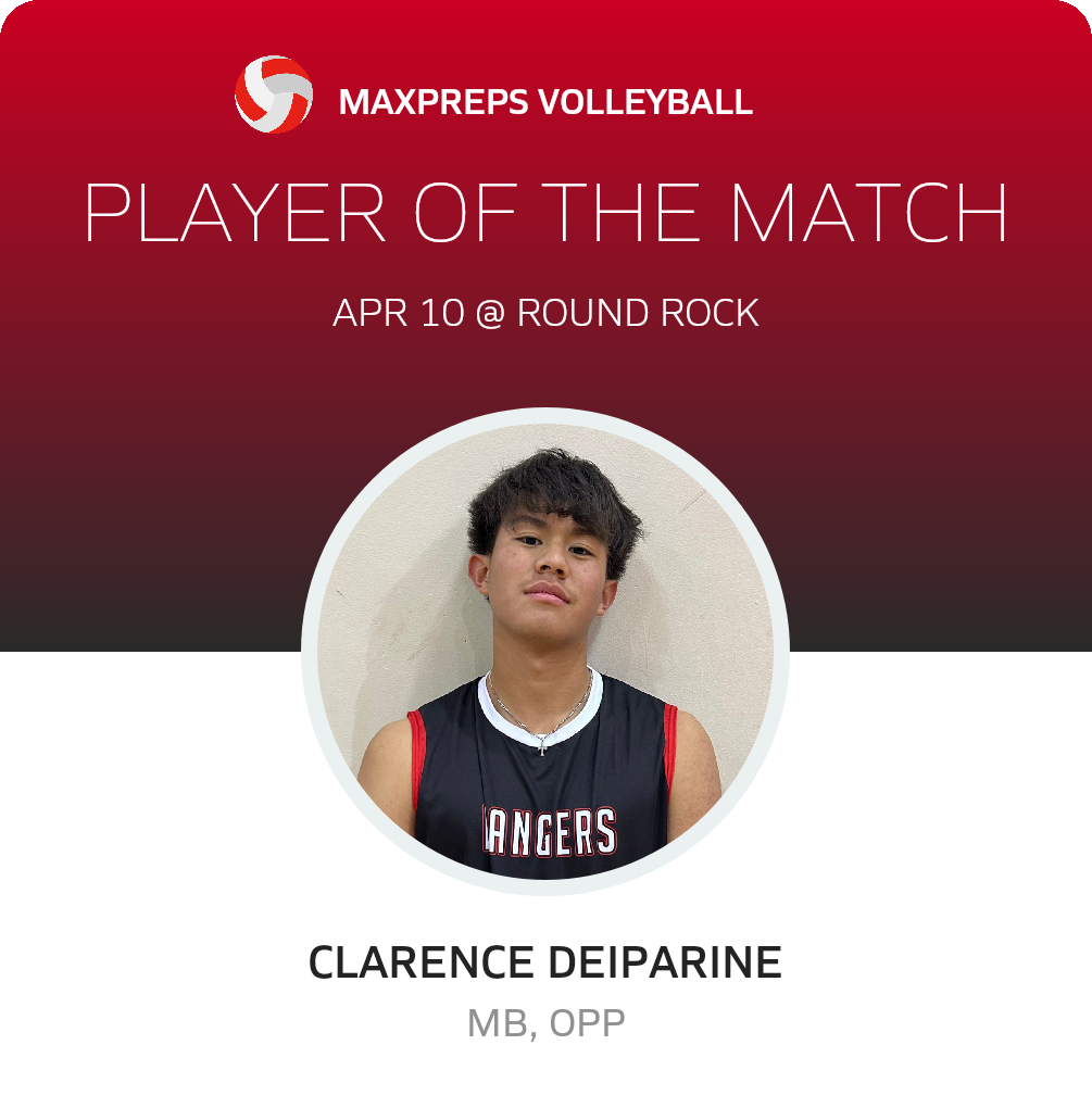 April 10, 2024: Round Rock, TX 78681 In Wednesday's league contest, the Vista Ridge Rangers (Cedar Park, TX) volleyball squad edged the host Round Rock Dragons (Round Rock, TX), by a margin of 3-2.