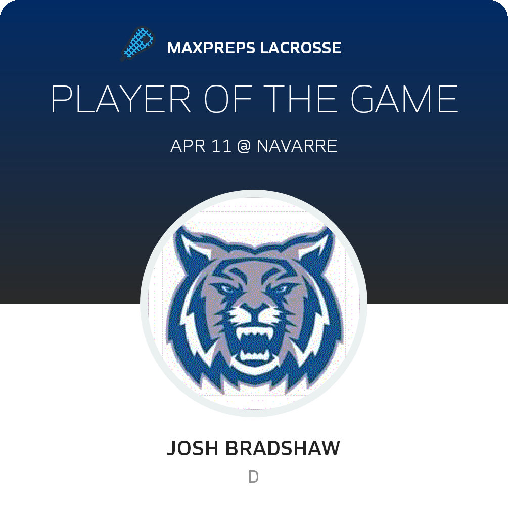 Congratulations to #77 Chandler Kempf for being selected the Navarre Lacrosse Player of the Game.