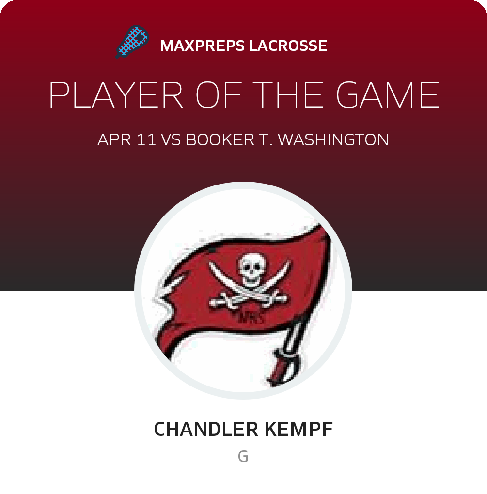 Congratulations to #26 Josh Bradshaw for being selected the Booker T. Washington Lacrosse Player of the Game.