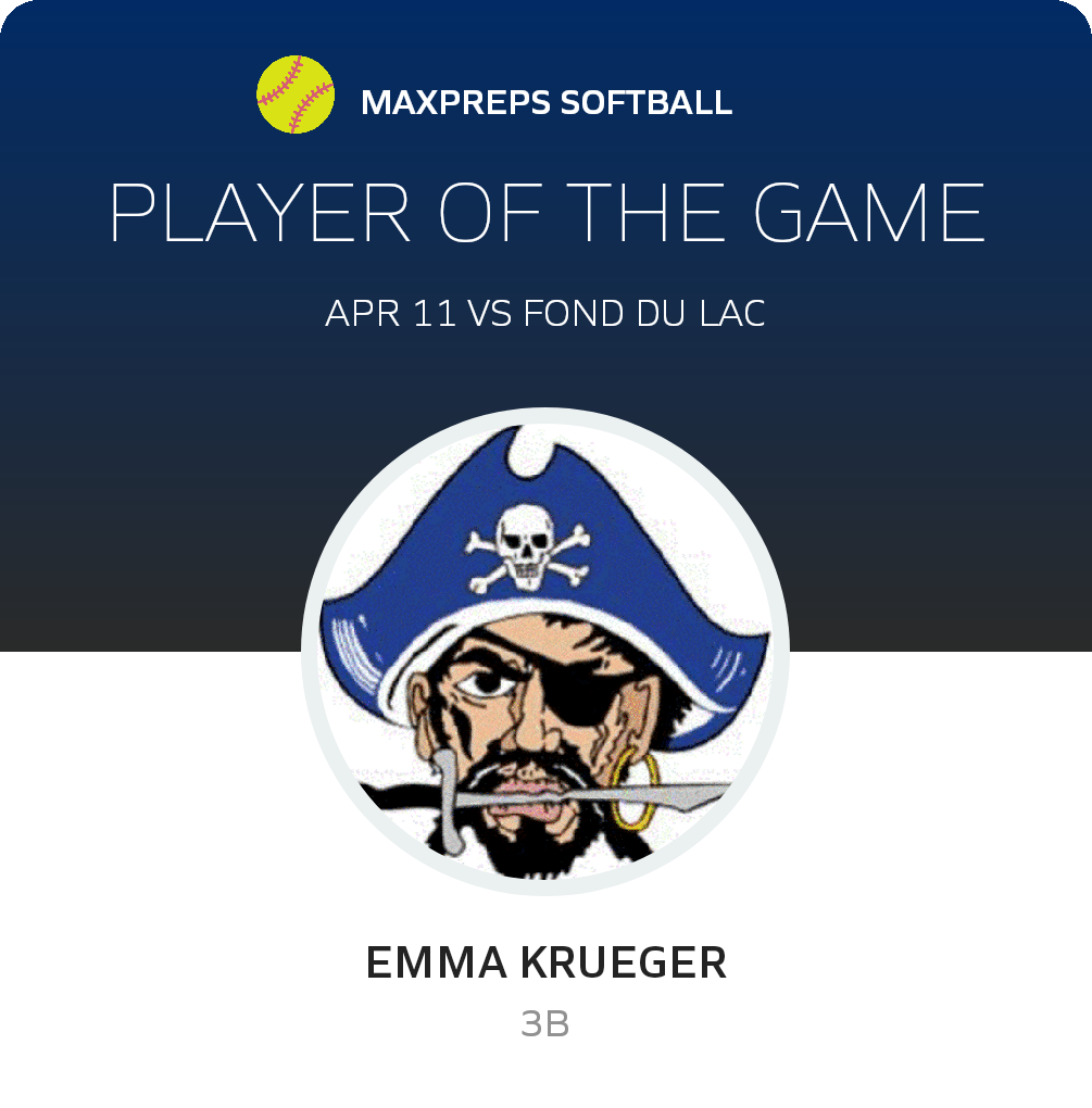Congratulations to #12 Emma Krueger for being selected the Bay Port Softball Player of the Game.