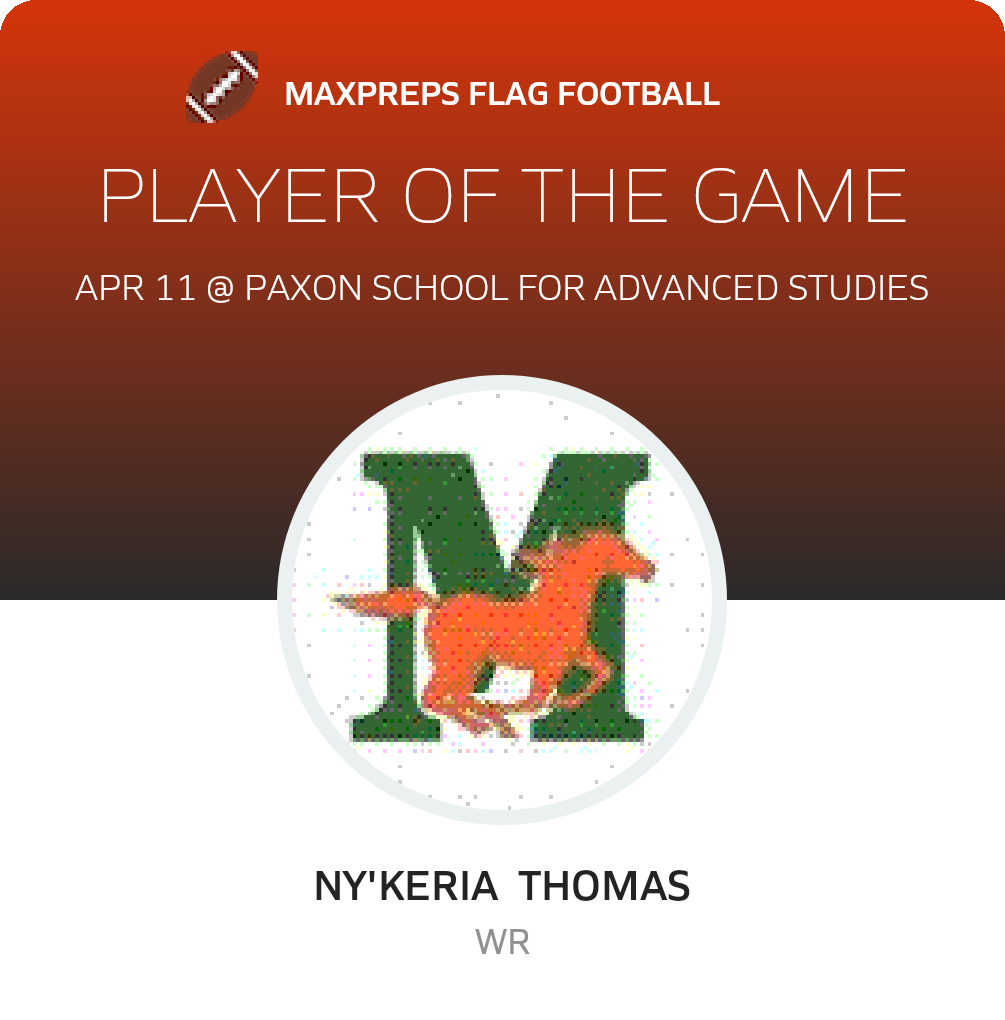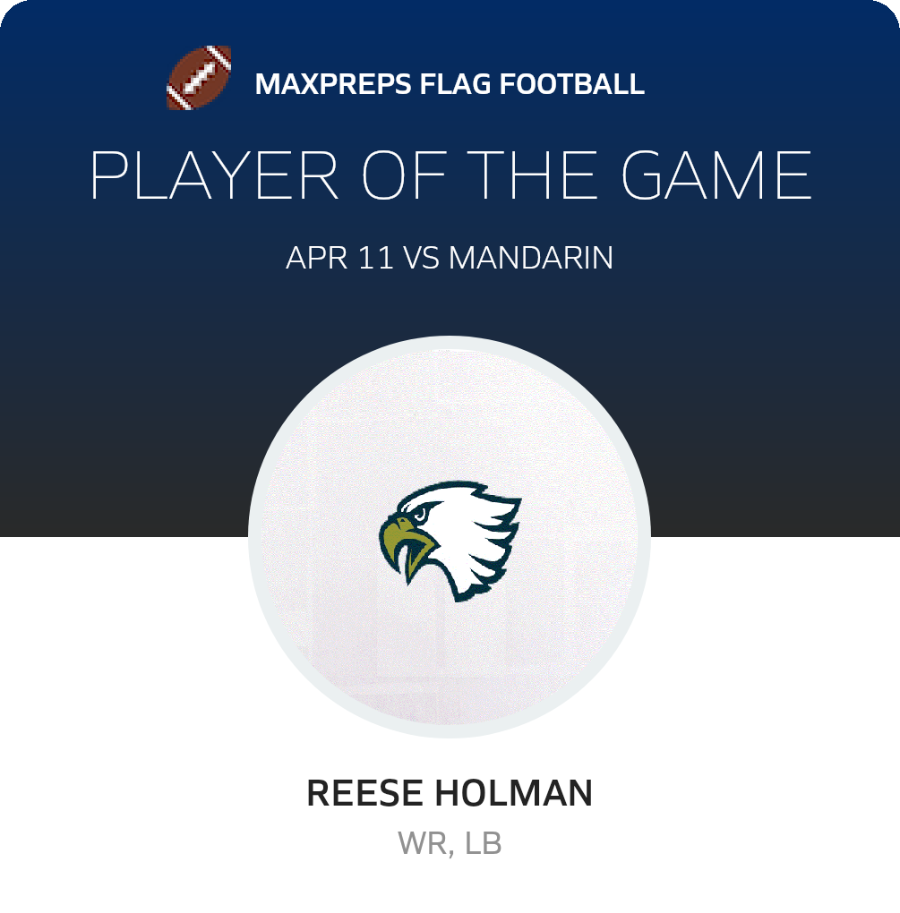 Congratulations to Ny'Keria Thomas for being selected the Mandarin Girls Flag Football Player of the Game.