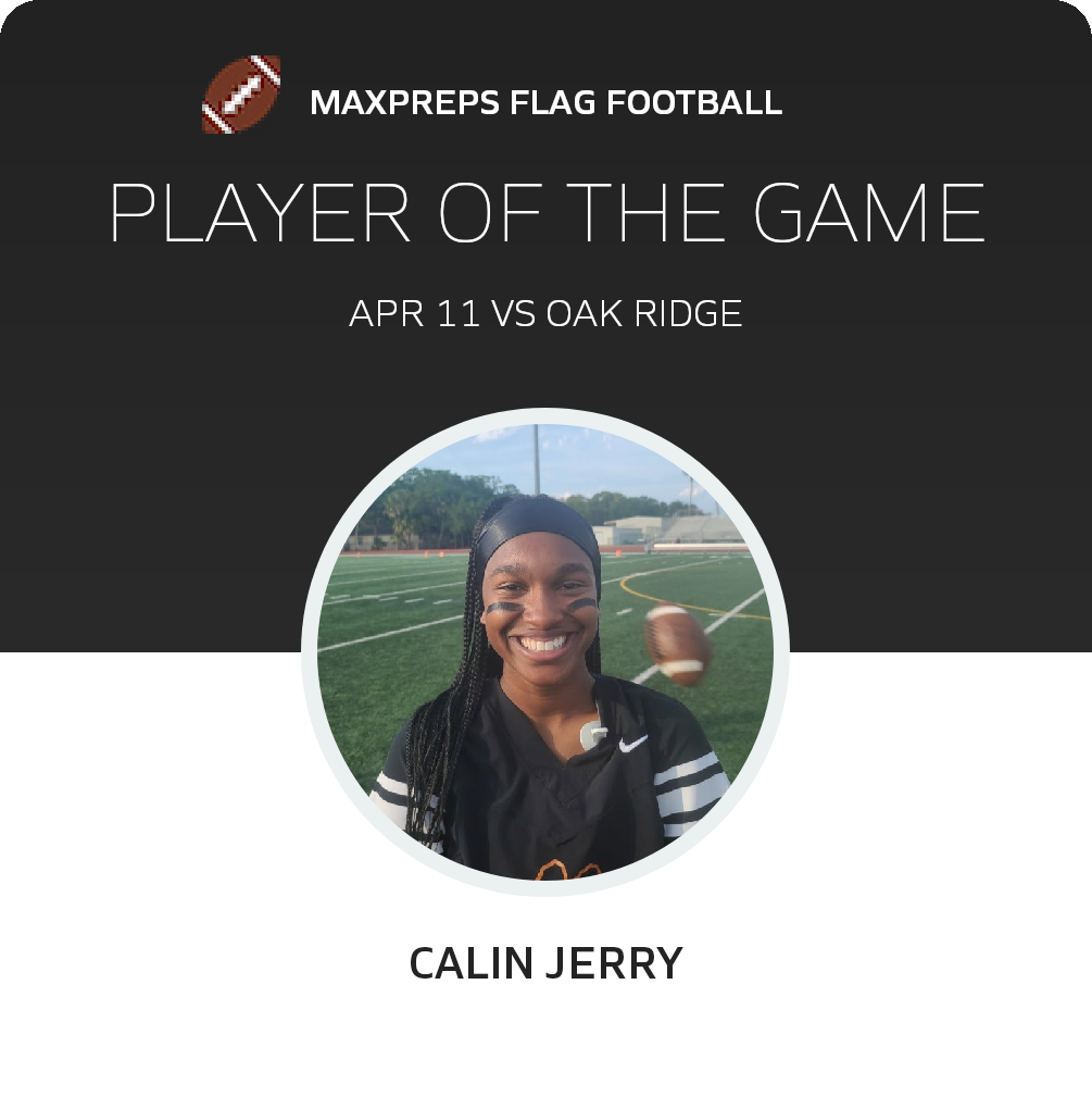 Congratulations to #1 Calin Jerry for being selected the Winter Park Girls Flag Football Player of the Game.