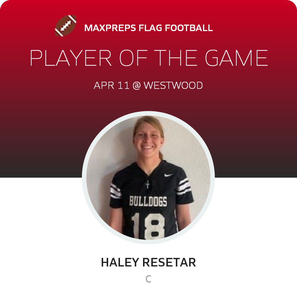 Congratulations to #18 Hailey Resetar for being selected the South Fork Girls Flag Football Player of the Game.