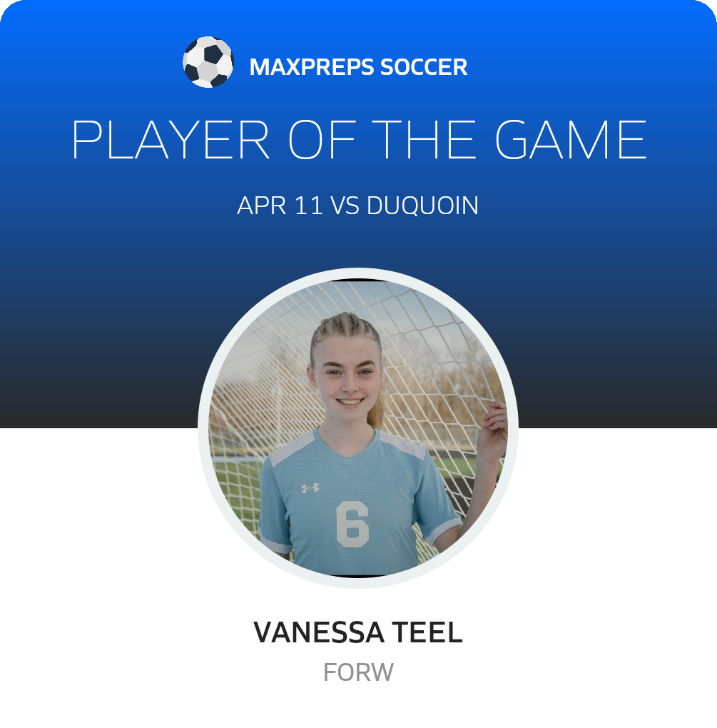 Congratulations to #6 Vanessa Teel for being selected the Pinckneyville Girls Soccer Player of the Match.