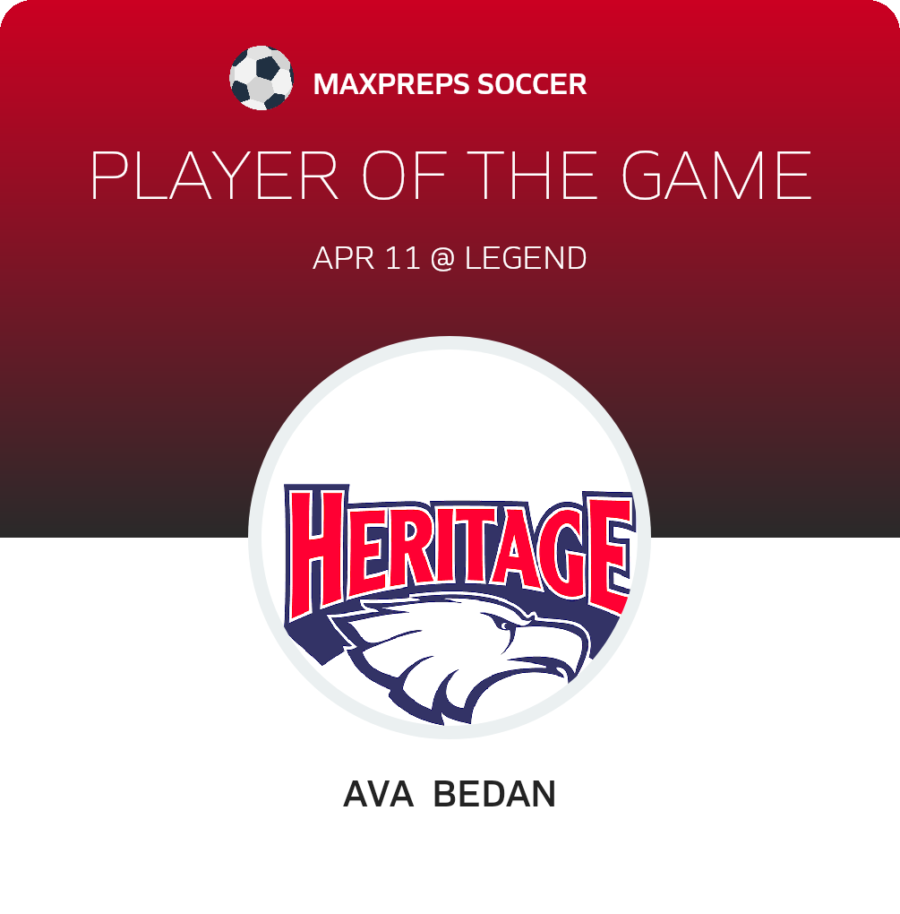 Congratulations to #4 Ava Bedan for being selected the Heritage Girls Soccer Player of the Match.