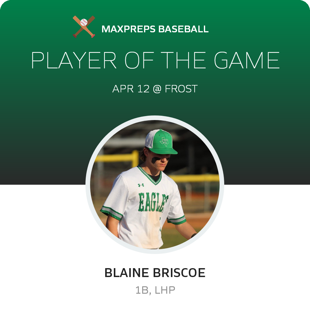 The Polar Bears now sport a 2-4 record. They take the field next when they travel to Rio Vista for a 2A Region II District 15 contest on Friday, April 15. Frost will play a Eagles squad coming off a 16-1 league win over Frost (Frost, TX). The Eagles record now stands at 13-4.
