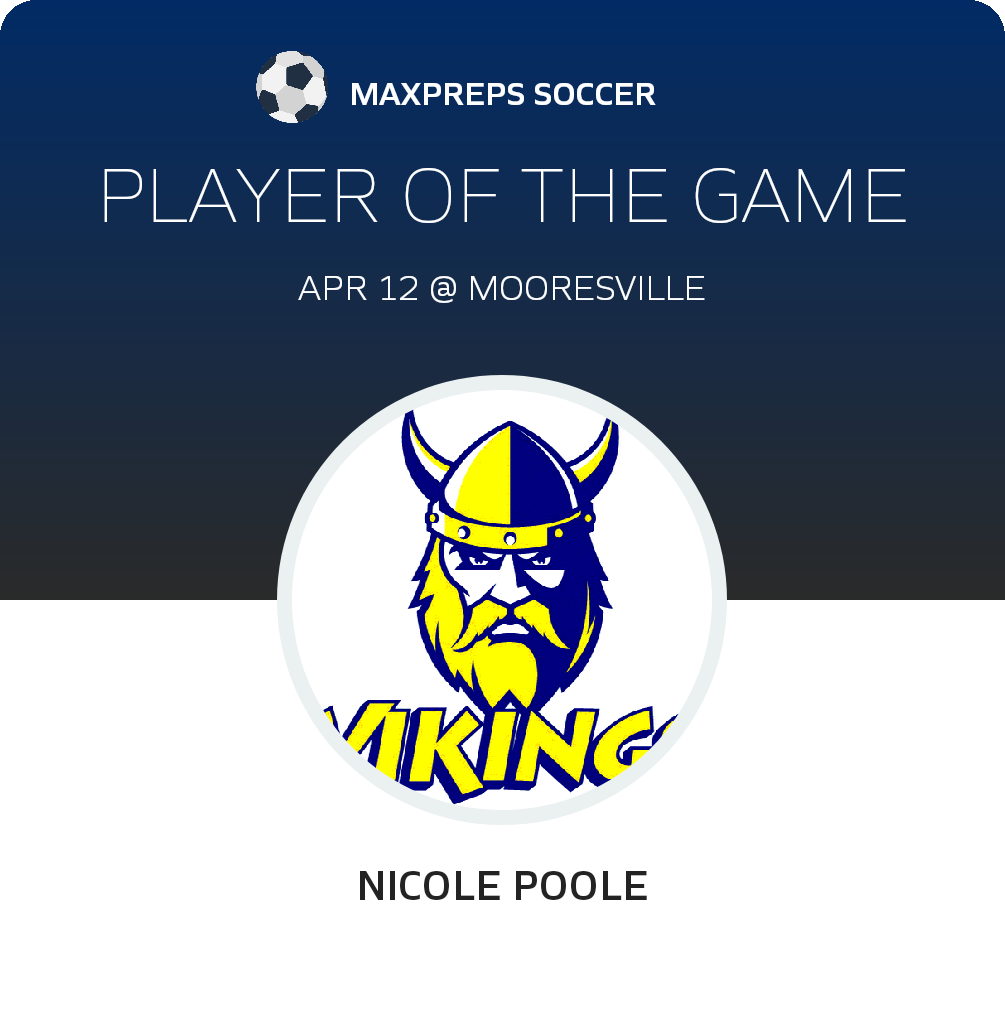 Congratulations to Nicole Poole for being selected the South Iredell Girls Soccer Player of the Match.