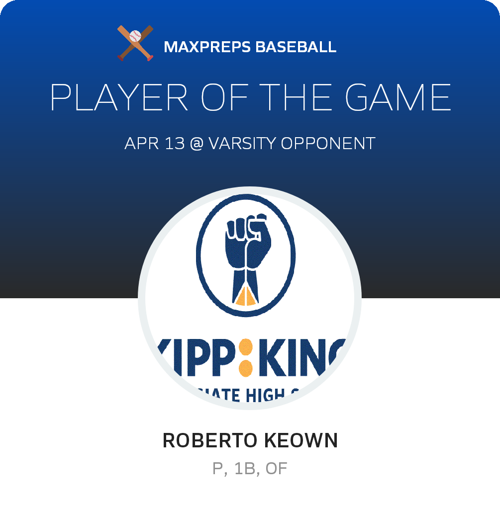 April 13, 2022: , The Varsity Opponent baseball team (, ), was overwhelmed 29-0 in Wednesday's league outing with the visiting KIPP King Lions (San Lorenzo, CA)