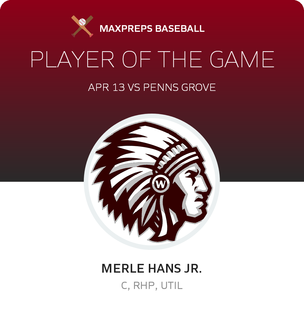 Congratulations to #1 Merle Hans Jr. for being selected the Wildwood Baseball Player of the Game.