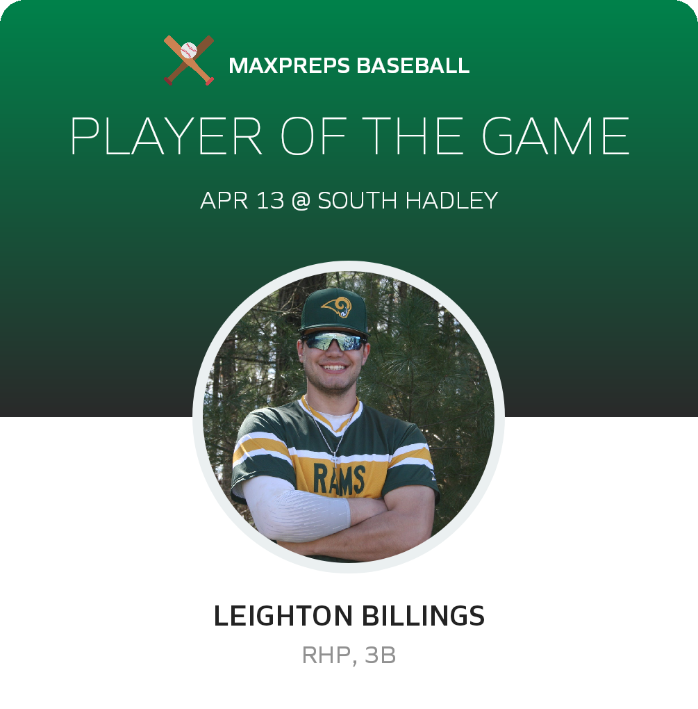 With the win, Southwick-Tolland upgrades its record to 3-1 on the season. The Rams travel to Monson (Monson, MA) to battle the Mustangs in a Bi-County test on Friday, April 15. The Mustangs come into the test with a record of 1-1. Monson won 8-6 in their recent league test against Ware (Ware, MA)