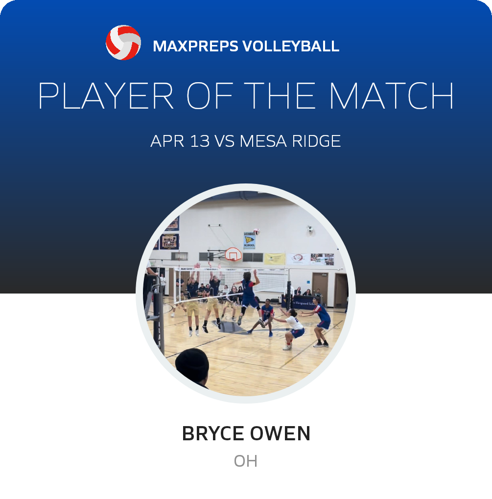 April 13, 2022: Fountain, CO 80817 The Fountain-Fort Carson Trojans volleyball team scored 3 points and limited the visiting Mesa Ridge Grizzlies to 0 in the Trojans league victory on Wednesday.