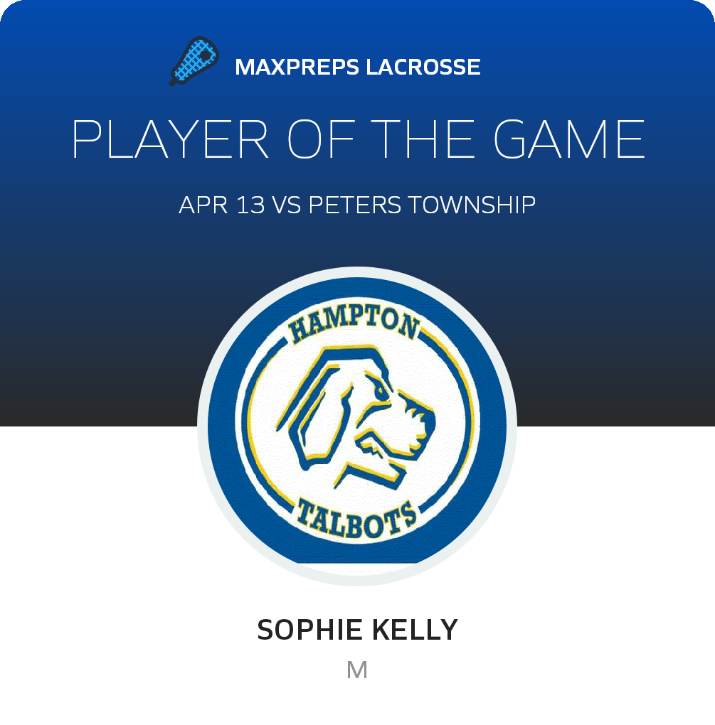 Congratulations to #20 Sophia Kelly for being selected the Hampton Girls Lacrosse Player of the Game.