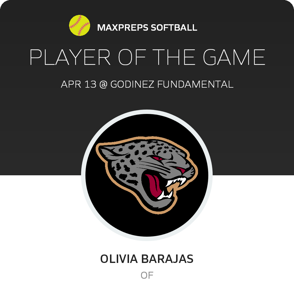 Congratulations to #2 Olivia Barajas for being selected the Segerstrom JV Softball Player of the Game.
