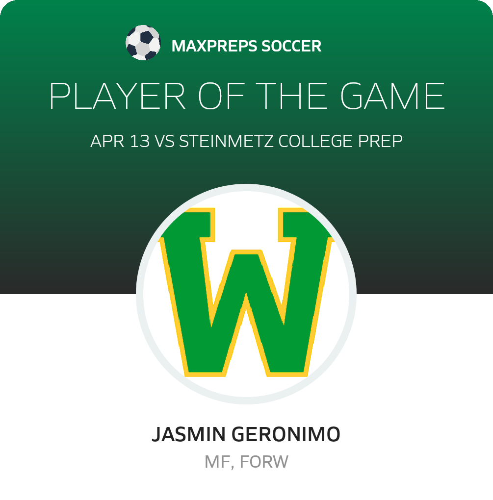 Congratulations to #13 Jasmin Geronimo for being selected the Westinghouse Girls Soccer Player of the Match.