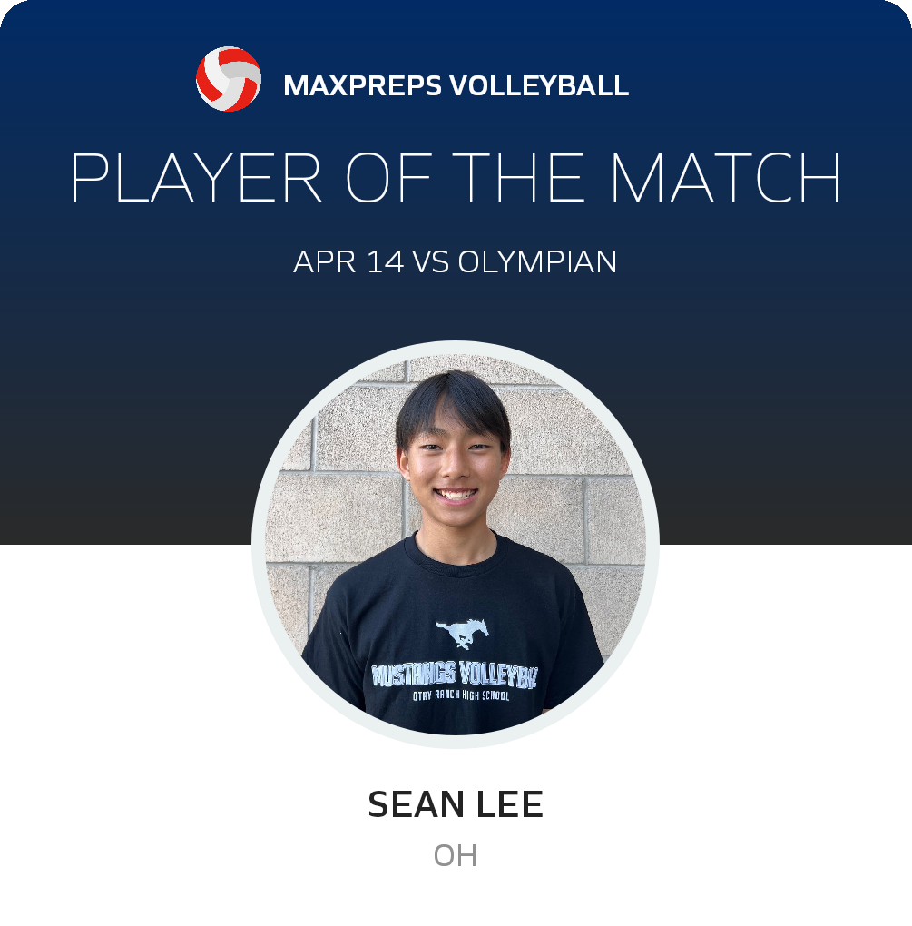 April 14, 2022: Chula Vista, CA 91913 The Olympian Eagles volleyball team (Chula Vista, CA), was nudged 2-1 in Thursday's league challenge with the host Otay Ranch Mustangs (Chula Vista, CA)