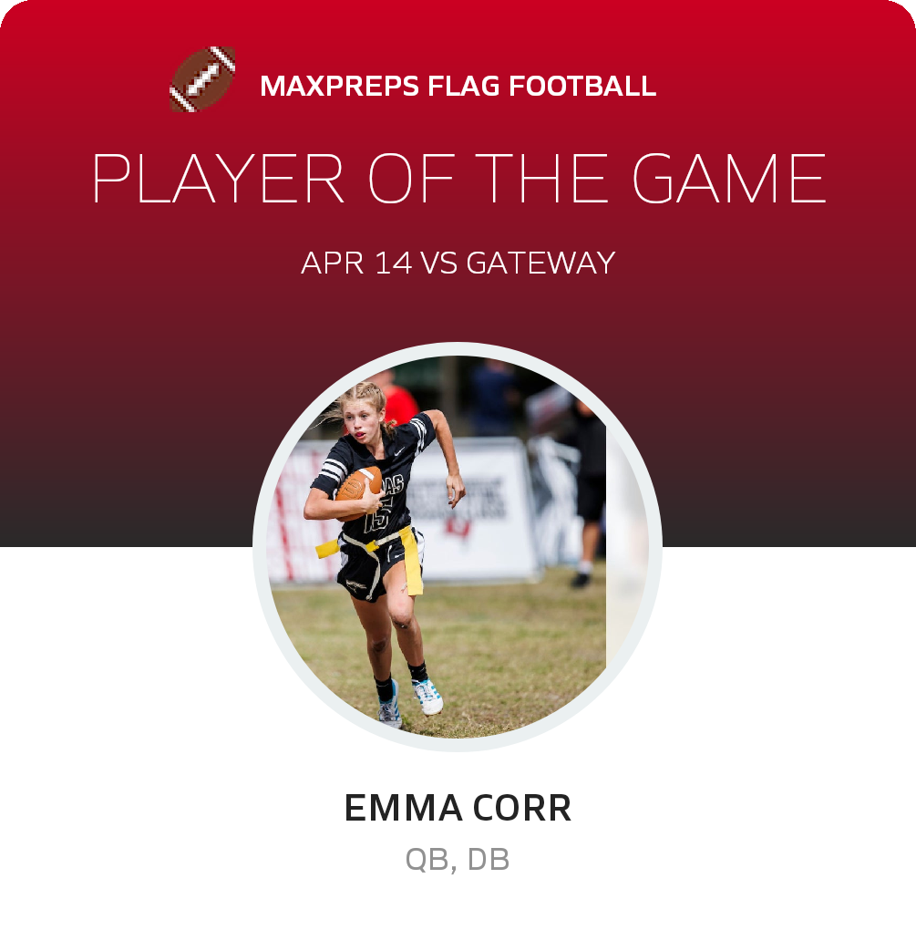 Congratulations to #4 Ashley Ledesma for being selected the Gateway Girls Flag Football Player of the Game.
