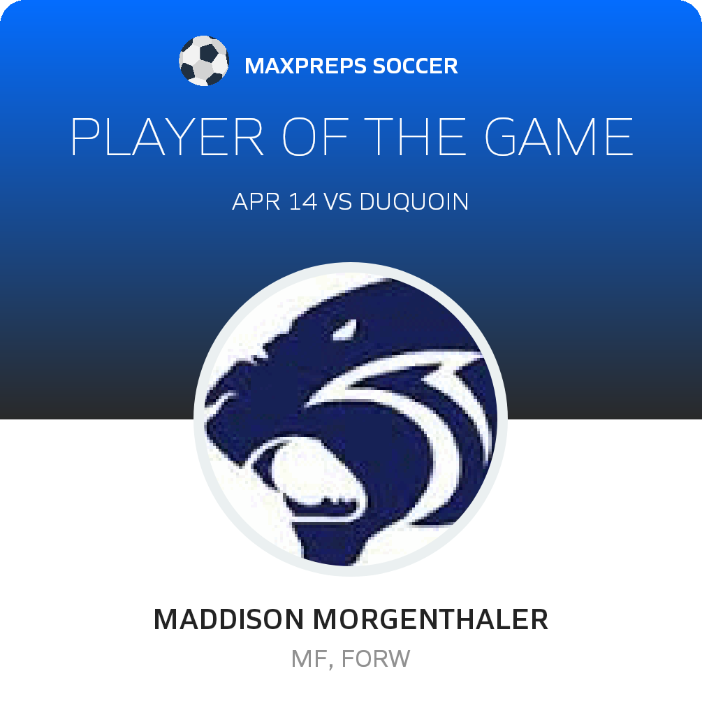 Congratulations to #16 Maddison Morgenthaler for being selected the Pinckneyville Girls Soccer Player of the Match.