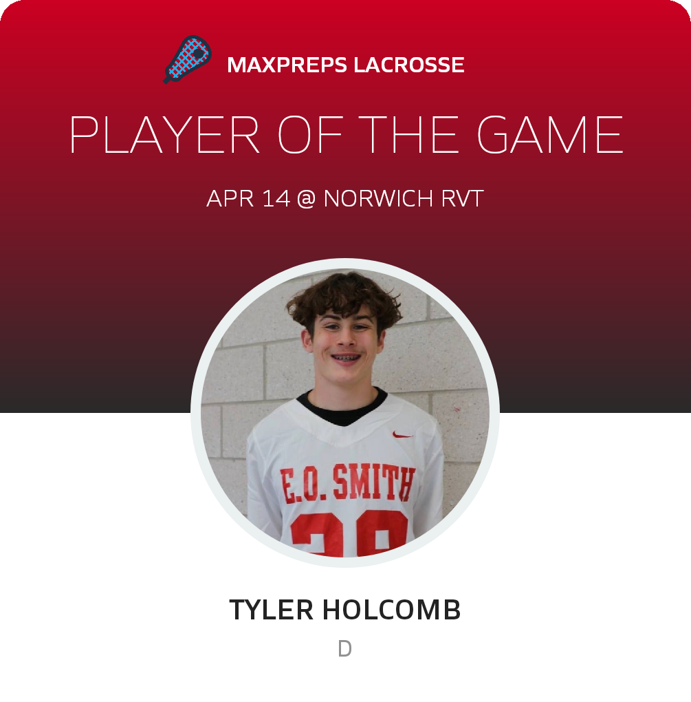 Congratulations to #28 Tyler Holcomb for being selected the Edwin O. Smith Lacrosse Player of the Game.