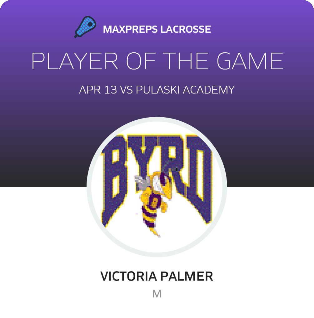 Congratulations to #13 Victoria Palmer for being selected the Byrd Girls Lacrosse Player of the Game.