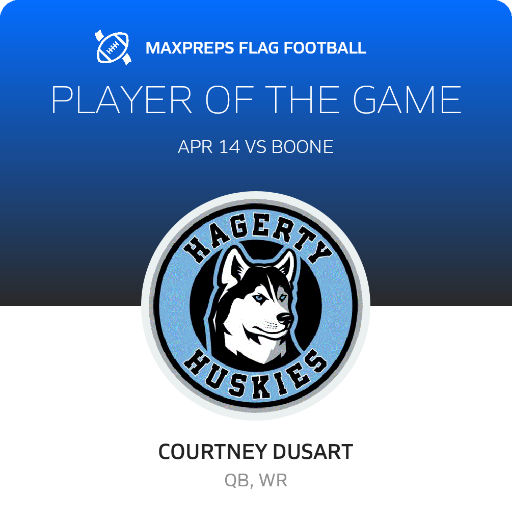 April 14, 2025: Oviedo, FL 32765 The Boone Braves (Orlando, FL) flag football tipped the host Hagerty Huskies (Oviedo, FL), 12-6 in Monday's non-league outing.