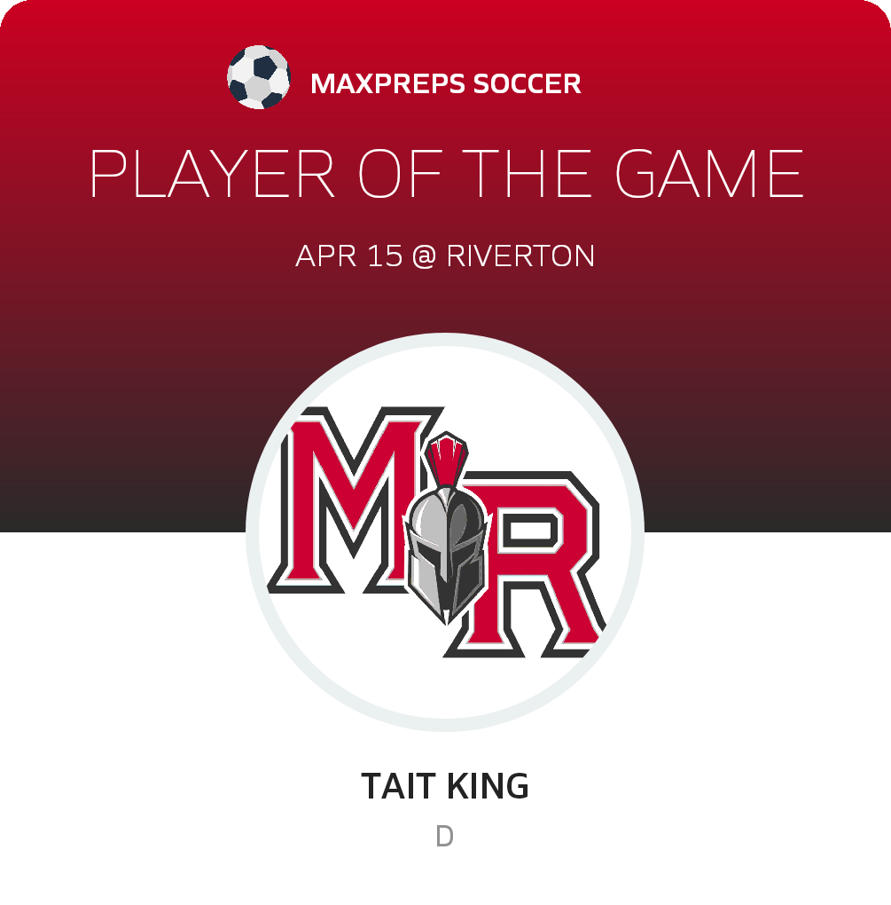 Congratulations to #2 Tait King for being selected the Mountain Ridge Soccer Player of the Match.