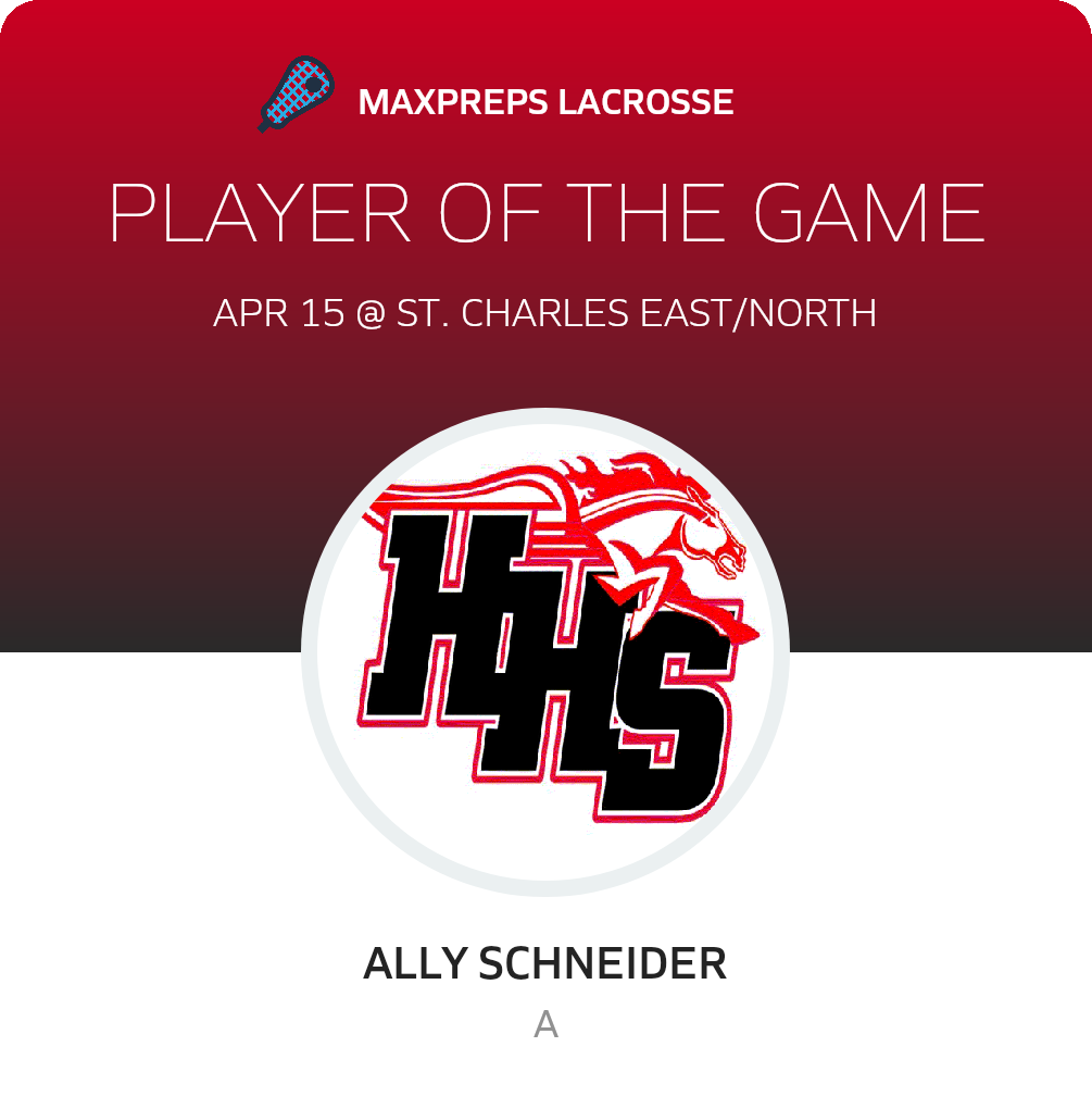 April 15, 2024: St. Charles, IL In Monday's non-league contest, the Huntley Red Raiders (Huntley, IL) lacrosse squad edged the host St. Charles East/North Fighting Saints (St. Charles, IL), by a count of 8-7.