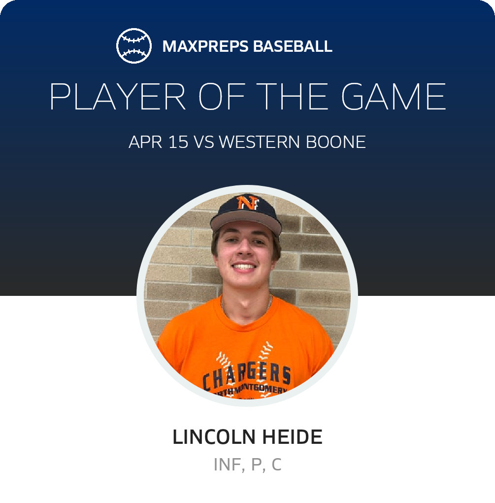 April 15, 2025: Crawfordsville, IN 47933 The North Montgomery Chargin' Chargers (Crawfordsville, IN) baseball got by the visiting Western Boone Stars (Thorntown, IN), 8-7 in Tuesday's league challenge.