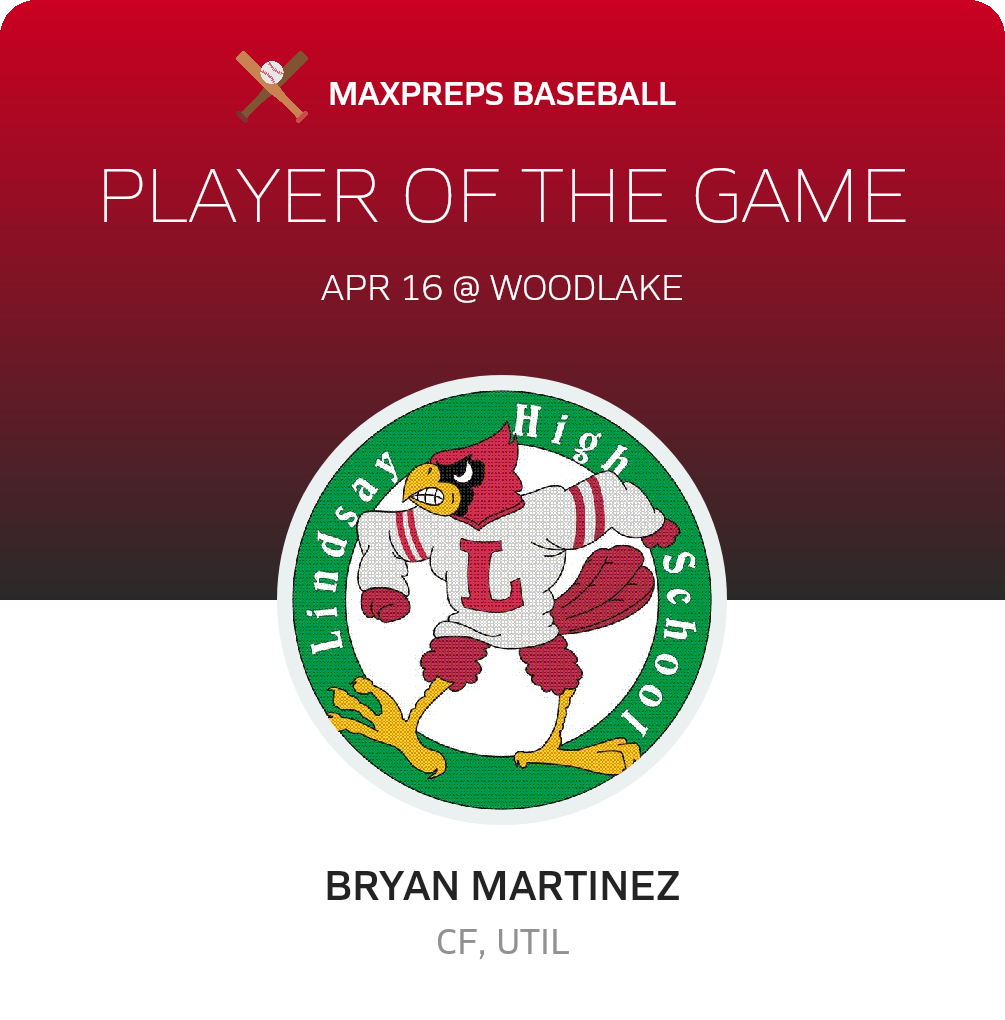 Next, the Cardinals face the Corcoran Panthers (Corcoran, CA) in a East Sequoia - Sequoia bout, on Friday, April 19. Lindsay will attempt to move on its 10-9 season record. The Panthers enter the bout with a 10-6 record after their 24-8 league win over Granite Hills (Porterville, CA).