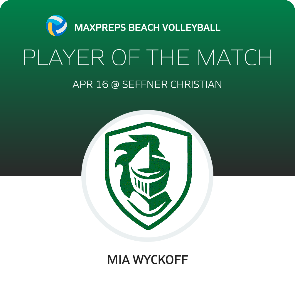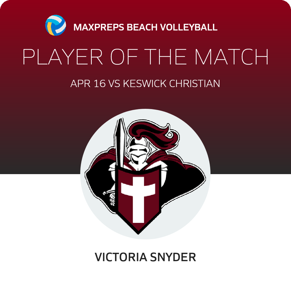 Congratulations to #1 Mia Wyckoff for being selected the Keswick Christian Beach Volleyball Player of the Match.