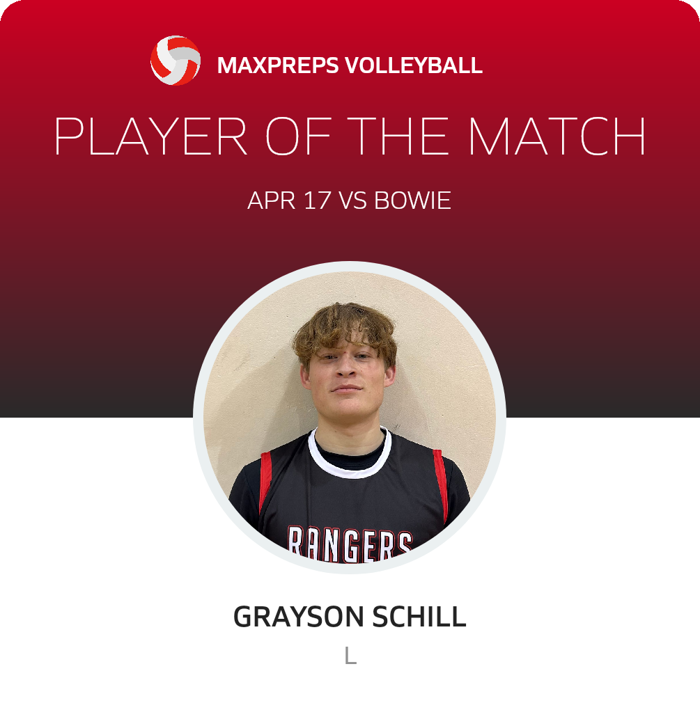 April 17, 2024: Cedar Park, TX 78613 The Vista Ridge Rangers volleyball team scored 3 points and limited the visiting Bowie Bulldogs to 0 in the Rangers league victory on Wednesday.