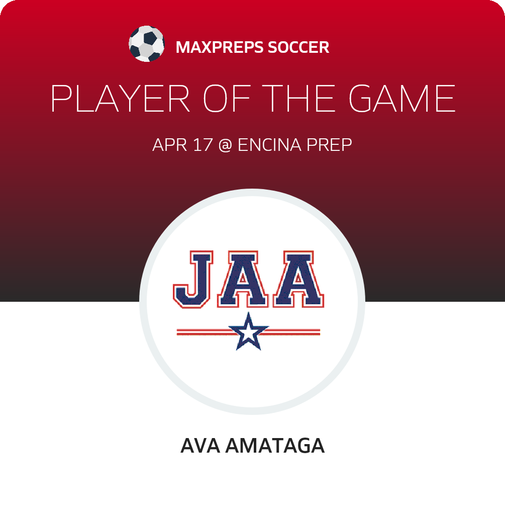 Congratulations to #12 Ava Amataga for being selected the John Adams Academy - El Dorado Hills Girls Soccer Player of the Match.