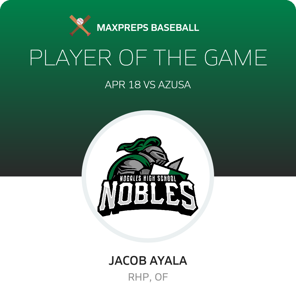 Coming up next, the Nobles play the Azusa Aztecs (Azusa, CA) in a Montview battle, on Thursday, April 20.  Nogales will attempt to move on its 16-1 season record. The Aztecs enter the battle with a 7-13 record after their 6-2 league loss to Nogales (La Puente, CA).
