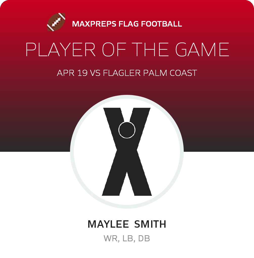 Congratulations to #12 Maylee Smith for being selected the New Smyrna Beach Girls Flag Football Player of the Game.