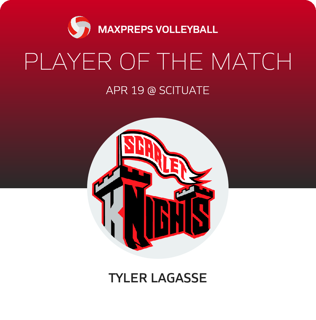 April 19, 2023: North Scituate, RI 02857 The Exeter-West Greenwich Scarlet Knights topped the host Scituate Spartans volleyball team by a score of 3-1 in Wednesday's league test.