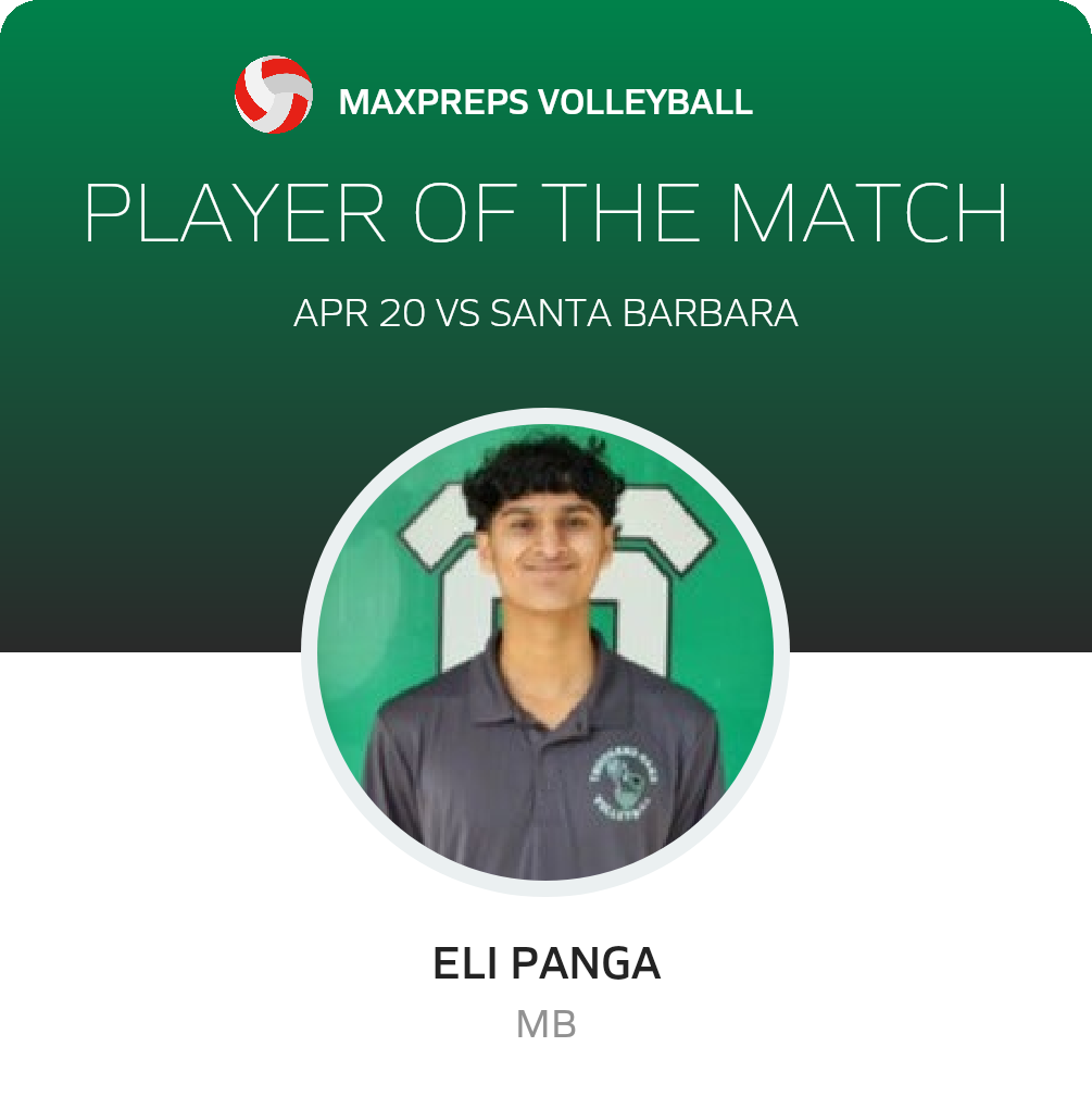 Congratulations to #4 Eli Panga for being selected the Thousand Oaks Boys Freshman Volleyball Player of the Match.