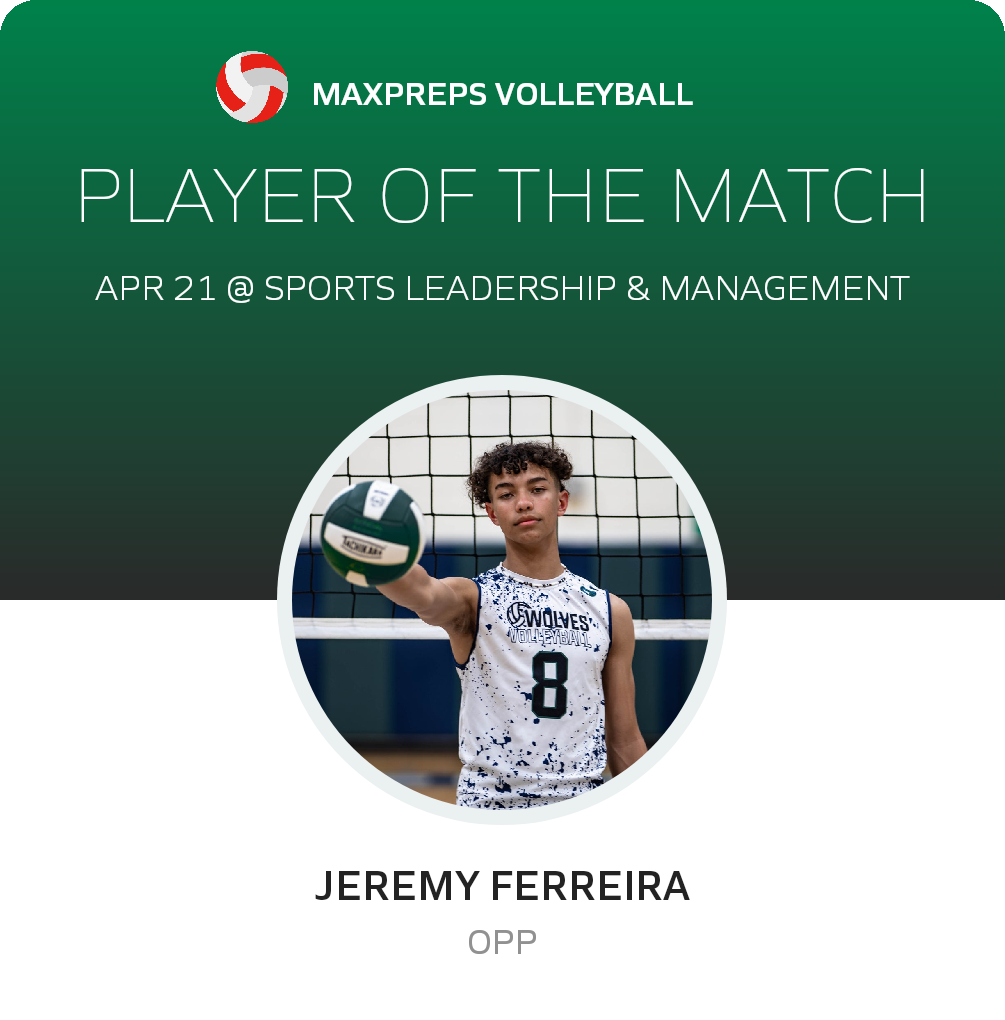 April 21, 2022: Miami, FL 33136 The Sports Leadership & Management volleyball team scored 3 points and limited the visiting TERRA Environmental to 1 in the non-league victory on Thursday.