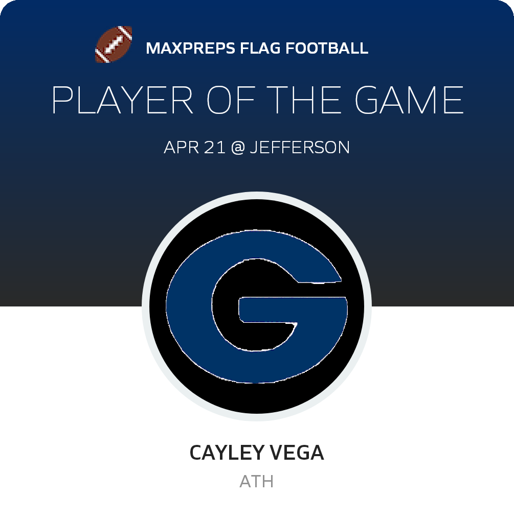 Congratulations to #12 Cayley Vega for being selected the Gaither Girls Flag Football Player of the Game.