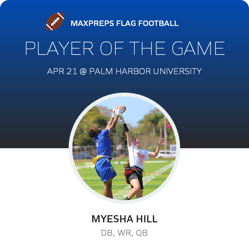 Congratulations to #3 Myesha Hill for being selected the Gibbs Girls Flag Football Player of the Game.