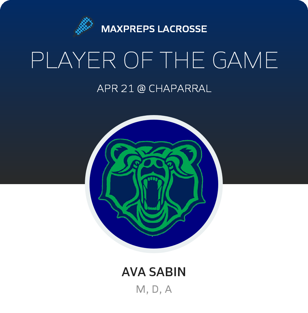 April 21, 2022: Parker, CO 80134 In Thursday's league battle, the ThunderRidge Grizzlies (Highlands Ranch, CO) lacrosse squad routed the host Chaparral Wolverines (Parker, CO), by a count of 16-6.