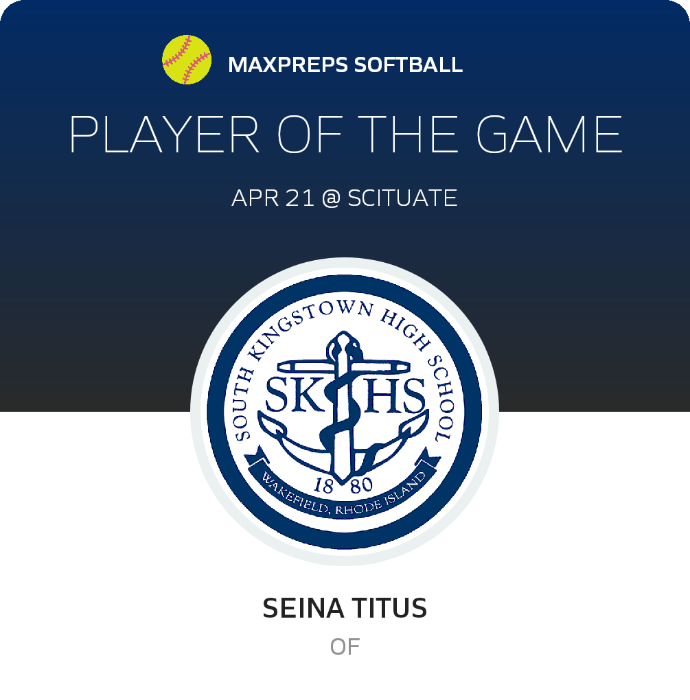 Coming up next, the Rebels encounter the Smithfield Sentinels (Esmond, RI) in a State Championship Division - North outing, on Monday, April 25. South Kingstown will attempt to upgrade on its 1-6 season record. The Sentinels enter the outing with a 3-5 record after their 5-4 league loss to Pilgrim (Warwick, RI).