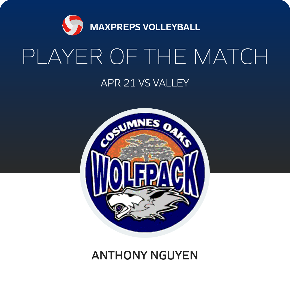 April 21, 2023: Elk Grove, CA 95757 In Friday's non-league battle, the host Cosumnes Oaks Wolfpack volleyball team scored a 3-0 triumph over the Valley Vikings.
