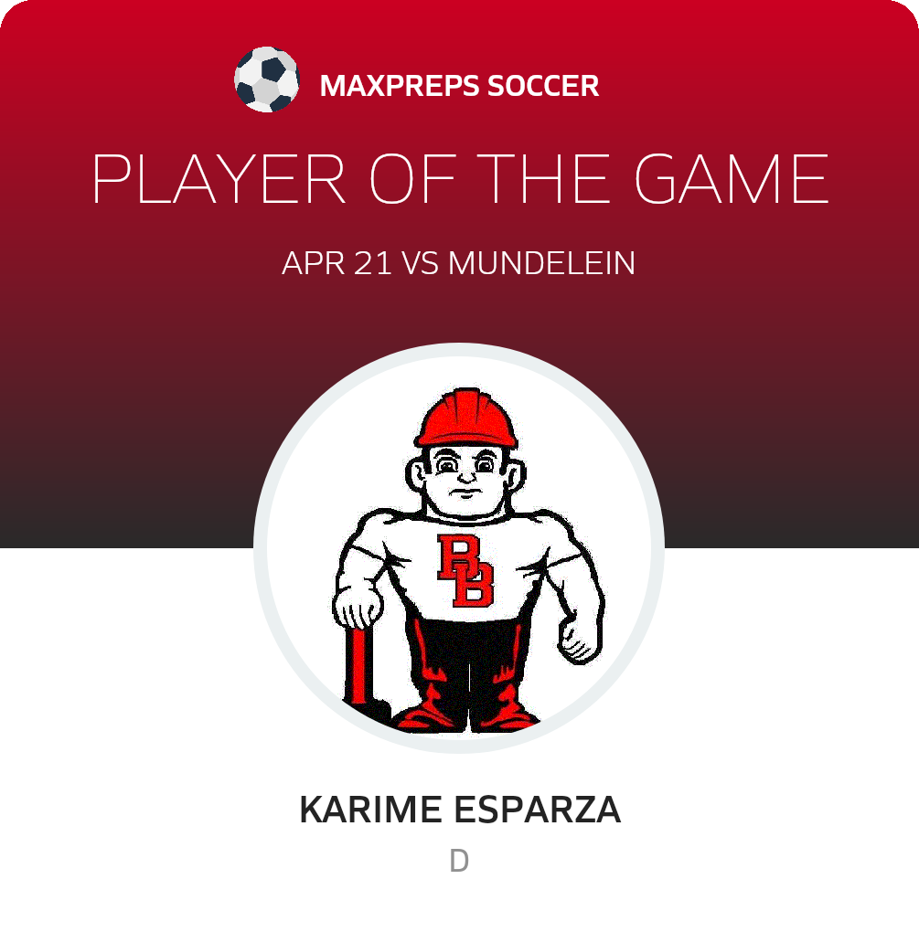 Congratulations to #16 Karime Esparza for being selected the Bradley-Bourbonnais Girls Soccer Player of the Match.